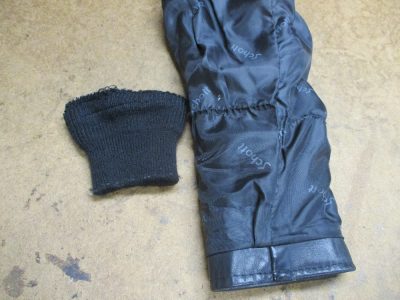 袖先にリブニットが付いていますので取り外していきます。