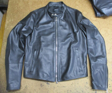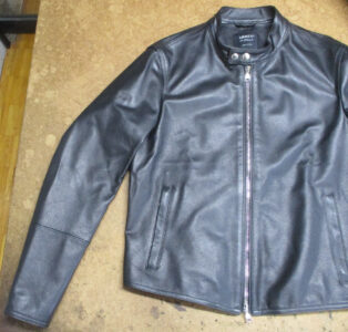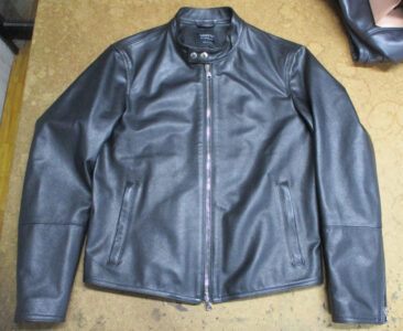 1枚目は愛知県からの郵送のお客さんの肩口から袖丈を短くしていく前のレザージャケットです。
