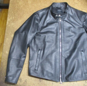 9枚目は10枚目との比較で袖丈を短くしていく前のレザージャケットの写真です。