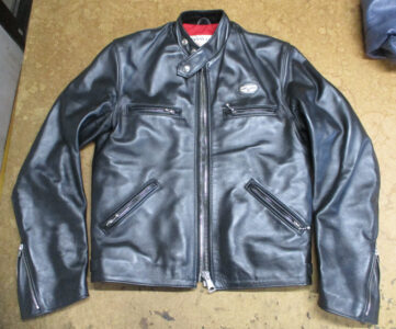 1枚目は来店されたお客さんの肩口から袖丈を短くしていくレザージャケットです。