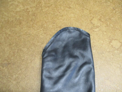 6枚目は裏地の袖山の生地も表のレザーぶ部員と同じ長さをカットしていきます。