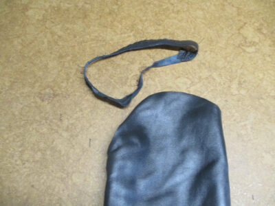 4枚目は袖山のレザーをカットして袖丈を短くしていきます。