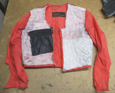 39枚目はレザージャケットに新しい裏地を取り付けた写真です。