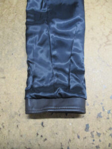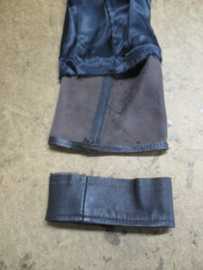 7枚目は裏地の袖先の生地も表のレザー部分と同じ長さをカットしていきます。