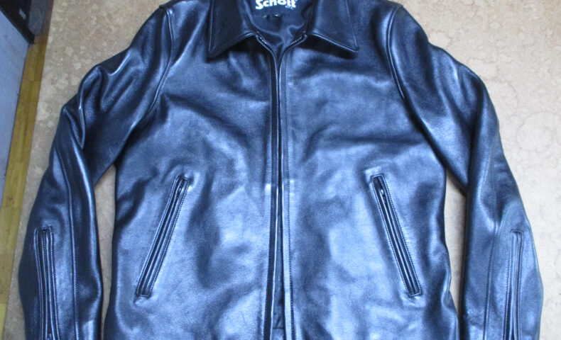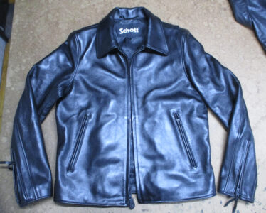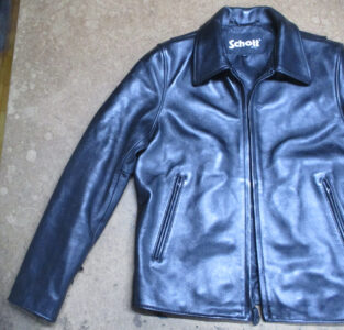 8枚目は9枚目との比較で袖丈を肩口から短くしていく前のレザージャケットです。