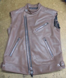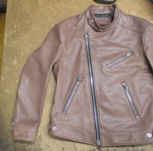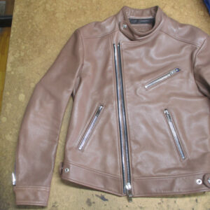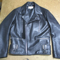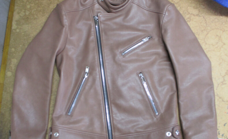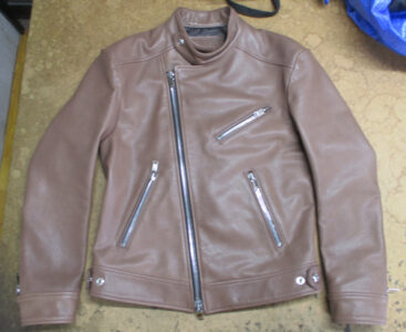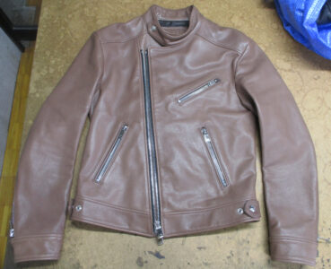1枚目は福島県からの郵送のお客さんの袖丈を短くしていく前のレザージャケットです。
