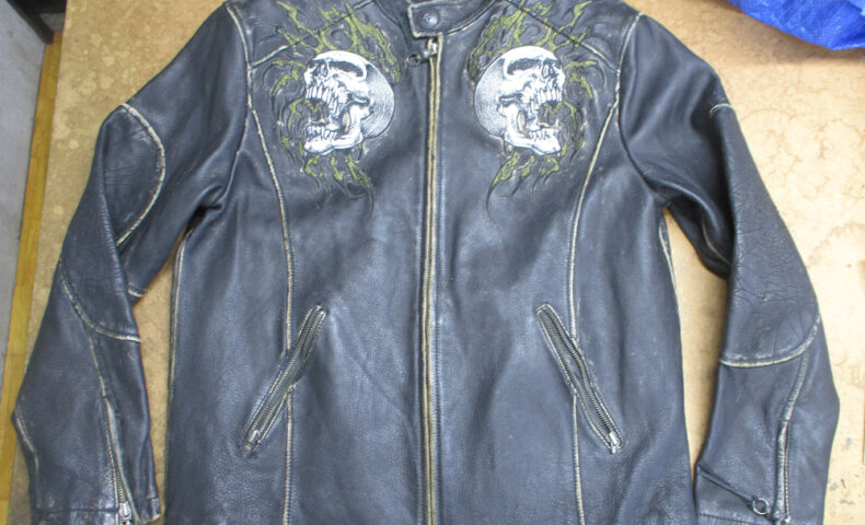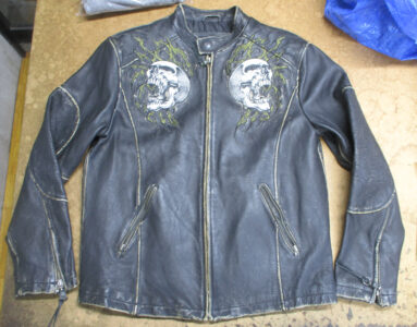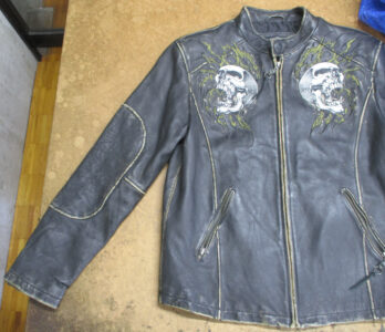 1枚目は東京都からの郵送のお客さんの肩口から袖丈を短くしていくレザージャケットです。