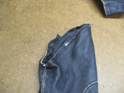 長い袖丈のレザージャケットを短く直していきます。