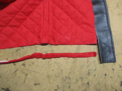 12枚目は着丈を短くするのに裾のレザーをカットした写真です。