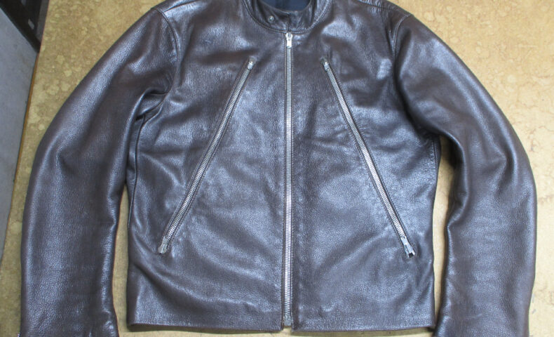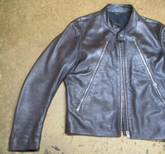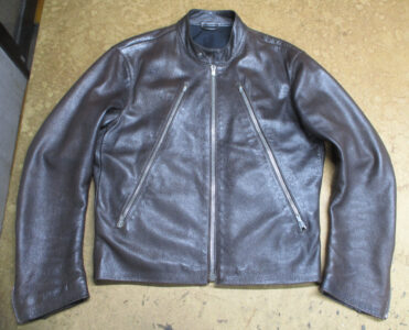 9枚目は10枚目との比較で肩口から袖丈を短くしていく前のレザージャケットです。