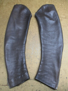 4枚目は袖山のレザーをカットして袖丈を短く仕上げていきます。
