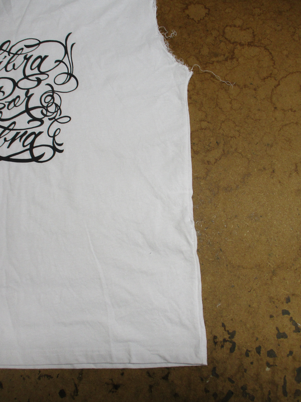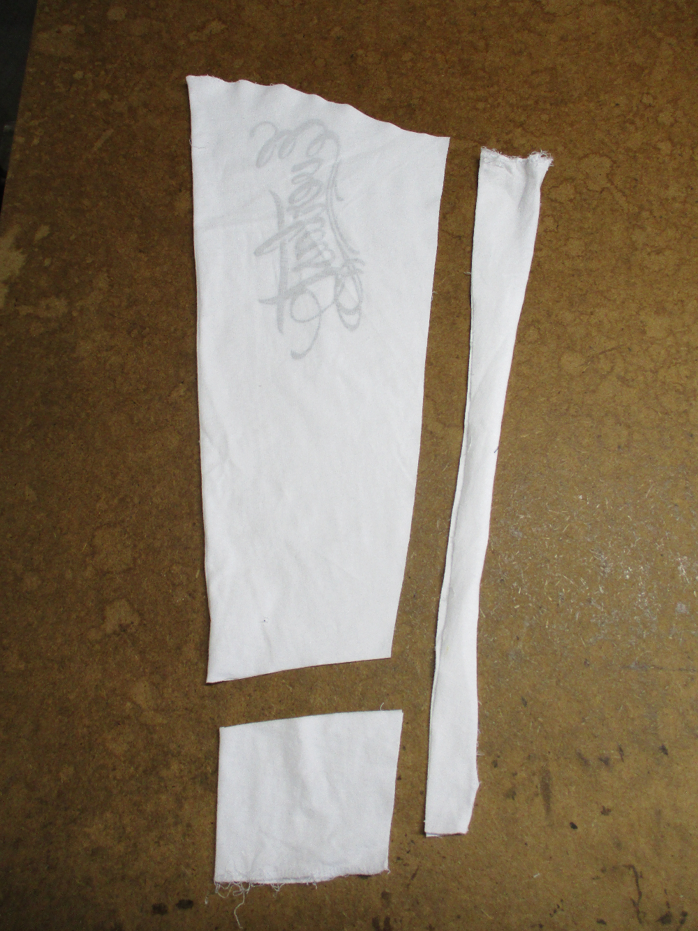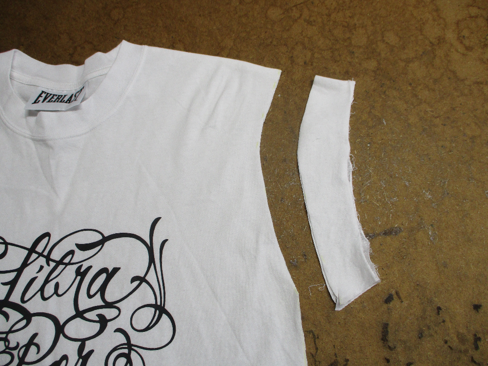 8枚目はロンTの胴体の着丈以外の肩幅、身幅、裾幅の生地をカットした写真です。