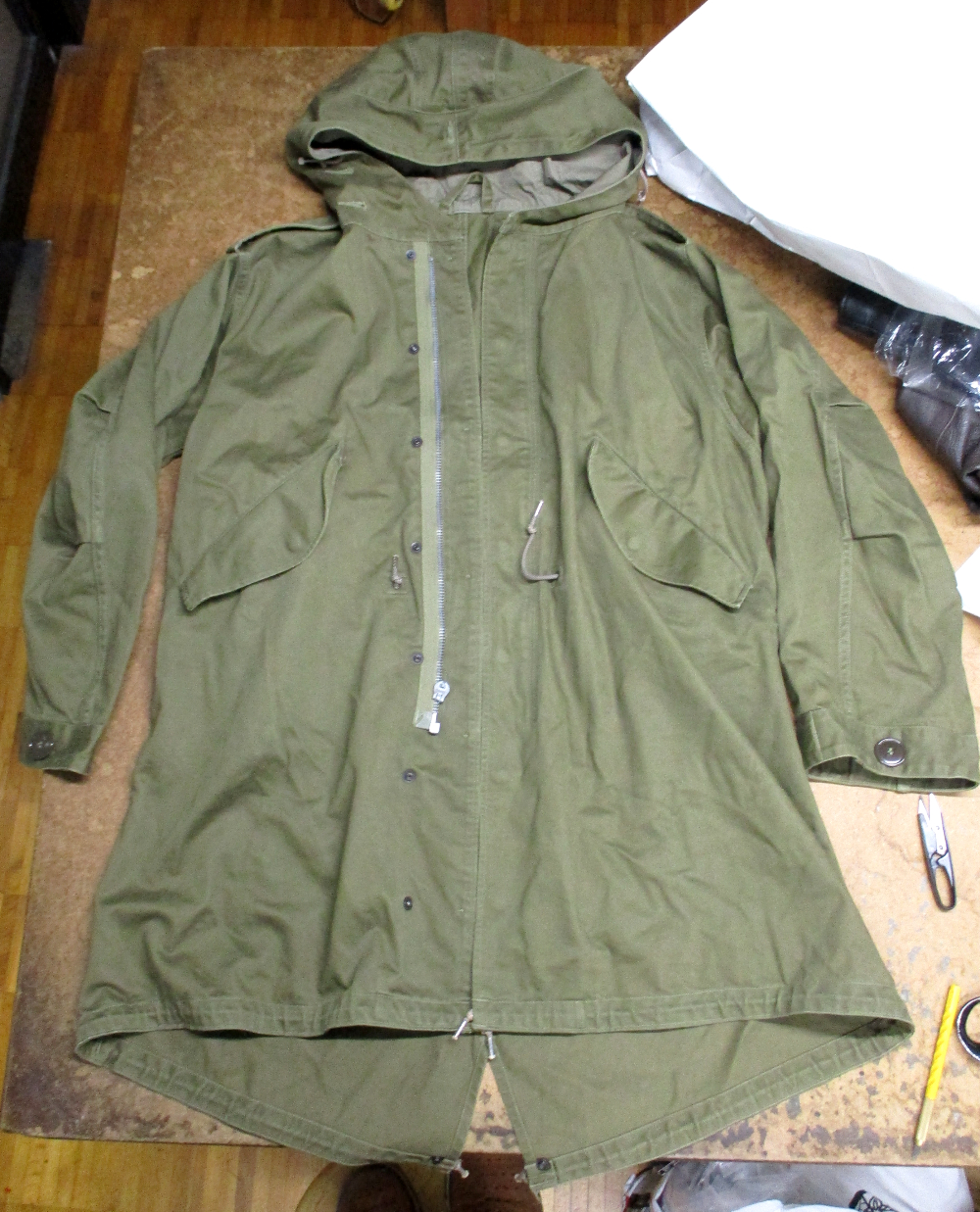 1枚目は京都府からの郵送のお客さんのファスナーを新しいものに交換していく前のM-51モッズコートです。