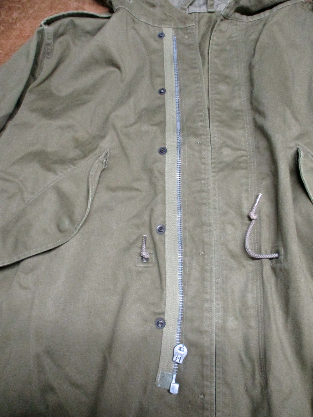 荷物を送ってもらう前にモッズコートの画像を頂いてファスナーのテープの上にドットボタンが打ち込んでるので