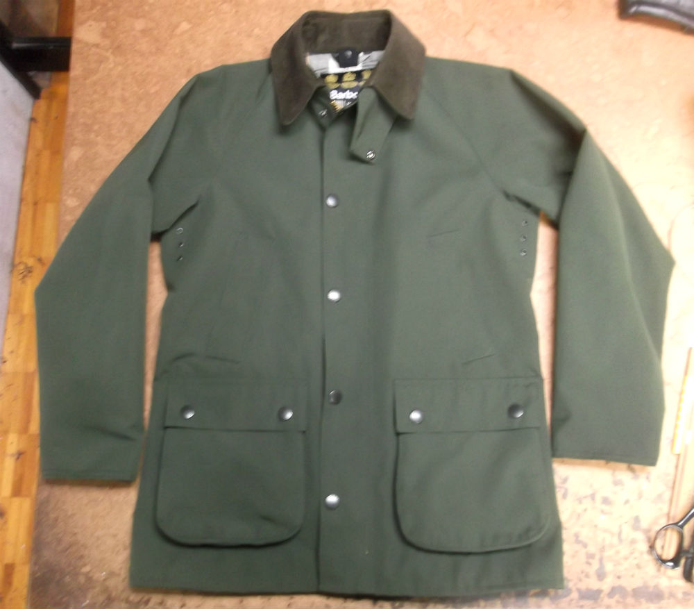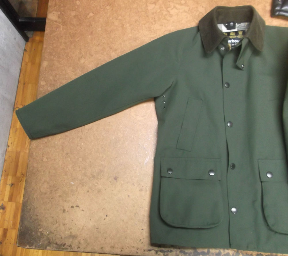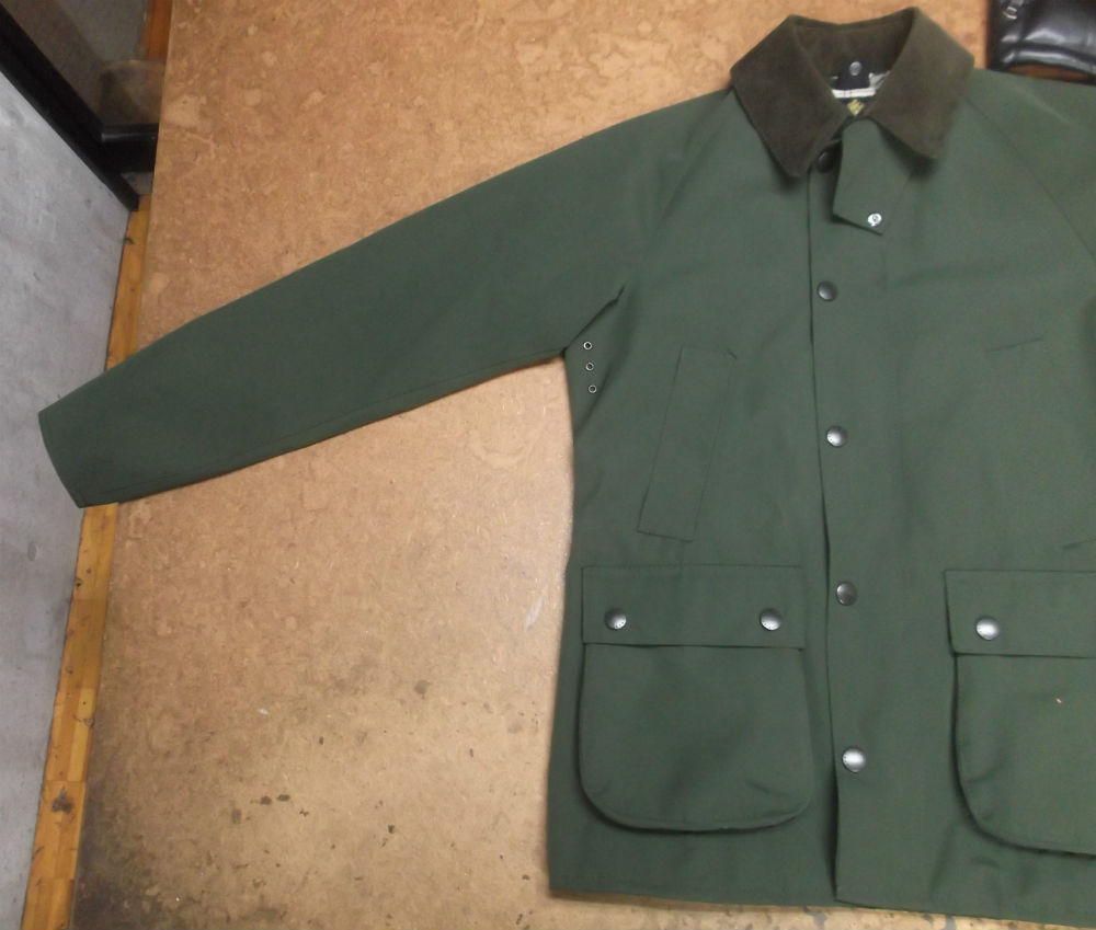 1枚目は神奈川県からの郵送のお客さんの長い袖丈を短くしていく前のバブアーのジャケットの写真です。