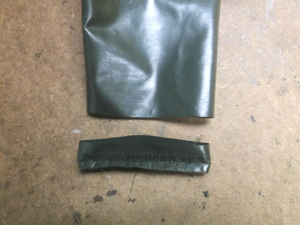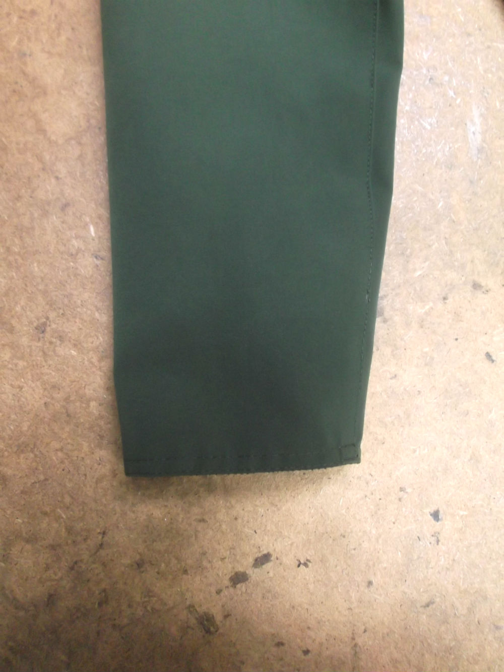 7枚目は裏地のリブニットのパーツの上の生地をお客さんの好みの長さの袖丈になる様にカットしていきます。