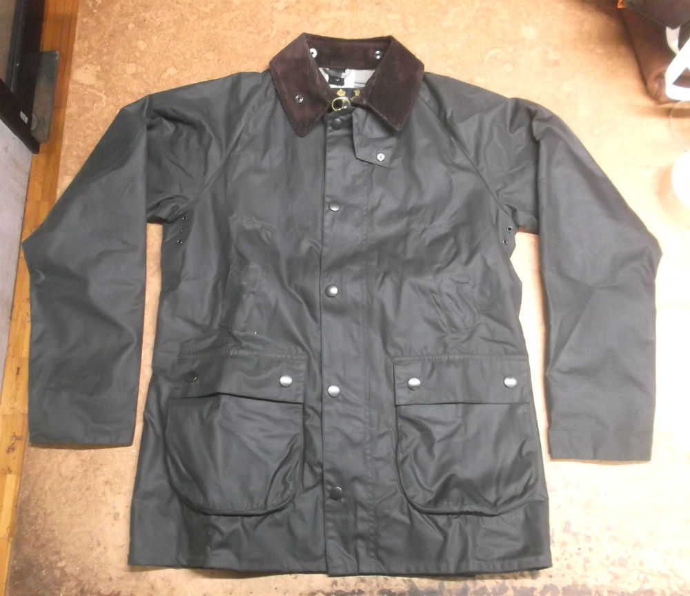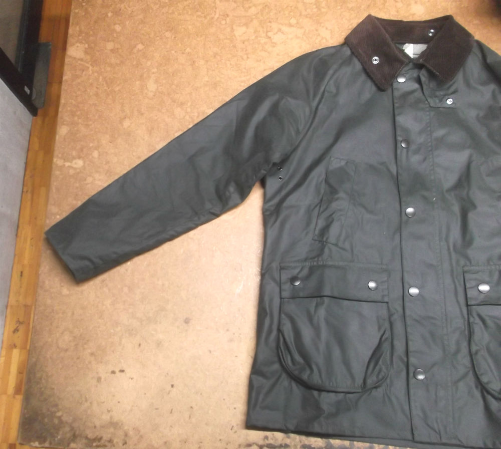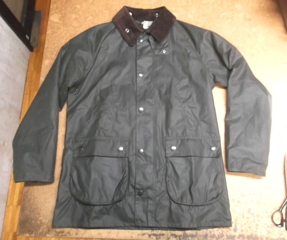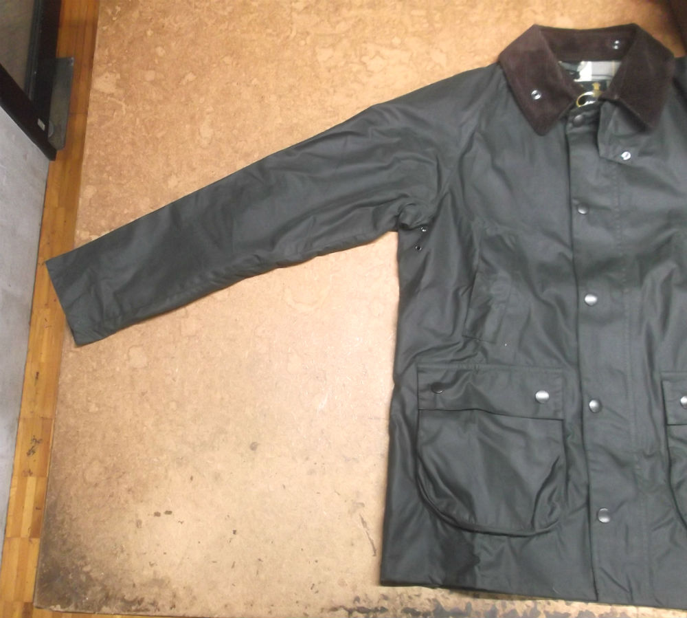 1枚目は長い袖丈を短くしていく前のバブアーのオイルドジャケットです。