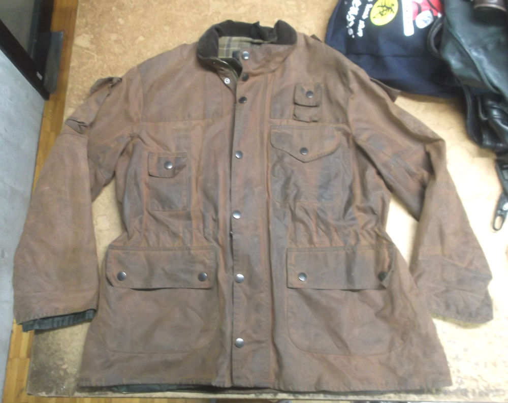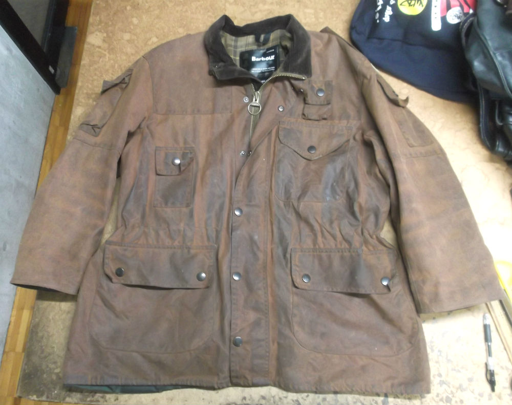 1枚目は長野県からの郵送のお客さんの長い袖丈のバブアーのオイルドジャケットです。