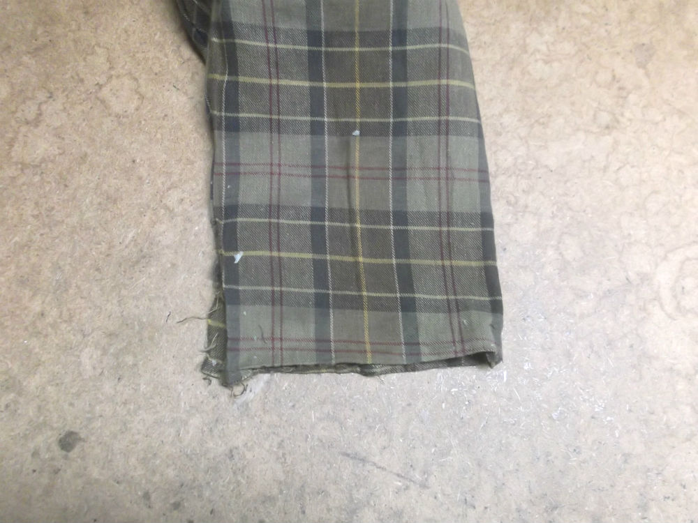 バブアーの長い袖丈のオイルドジャケットをお客さんの好みの長さに短くリサイズ