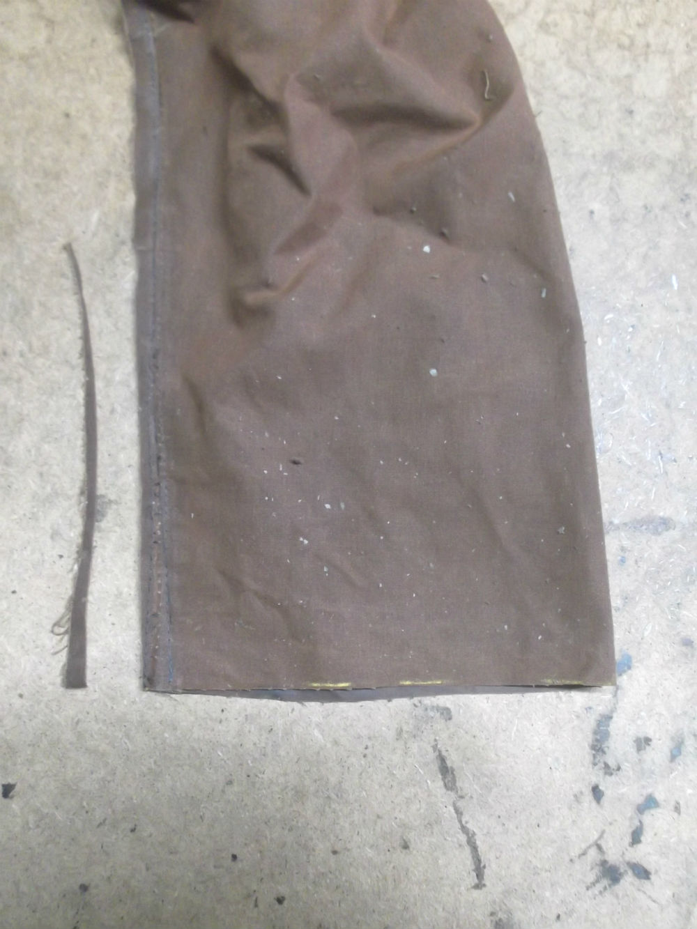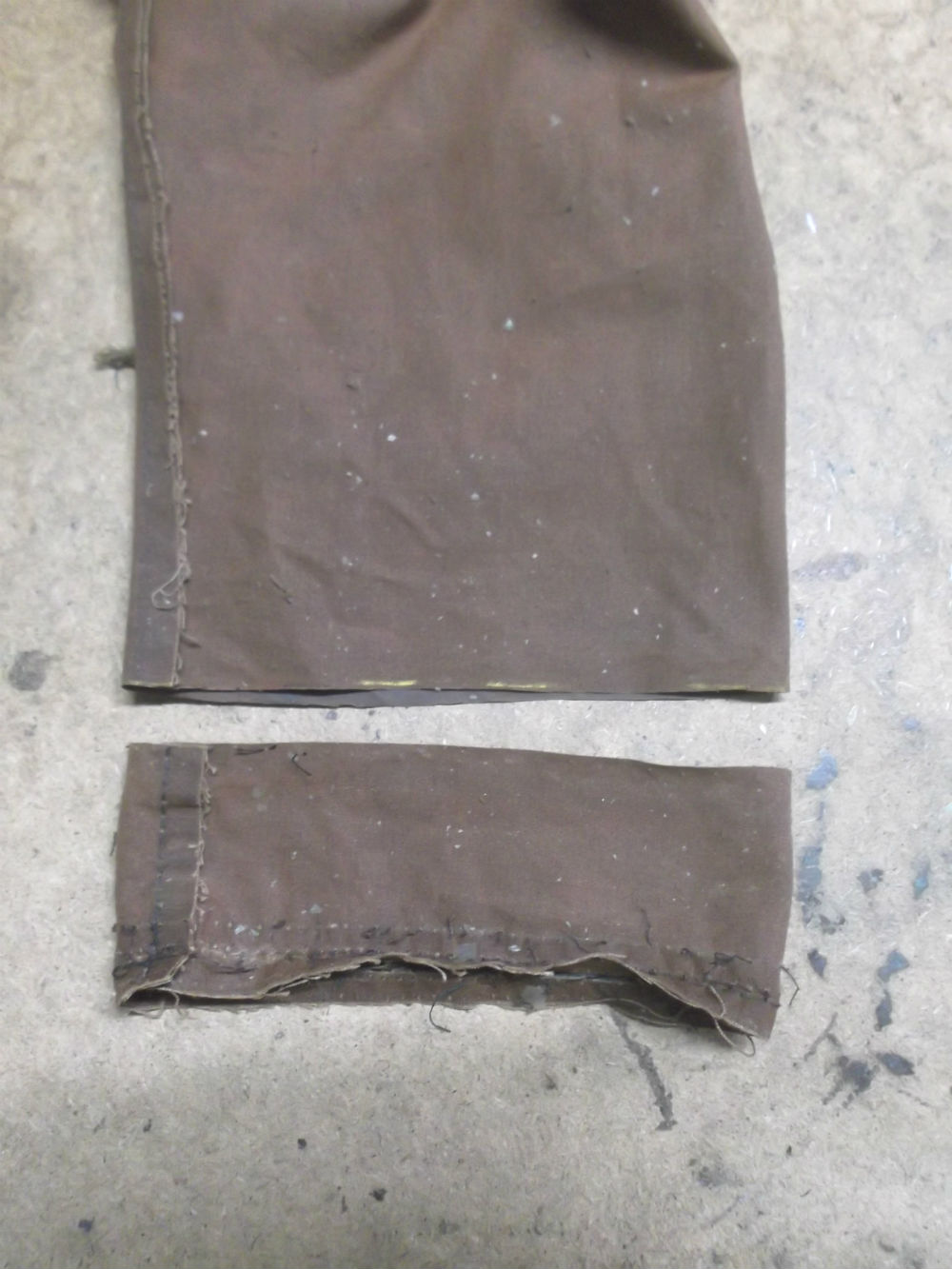 8枚目は表側の袖先の生地をカットして袖丈を短くしていきます。