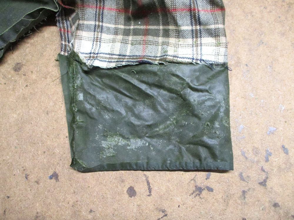 16枚目は17枚目との比較で袖丈を袖先から短くしていく前のオイルドジャケットの写真です。