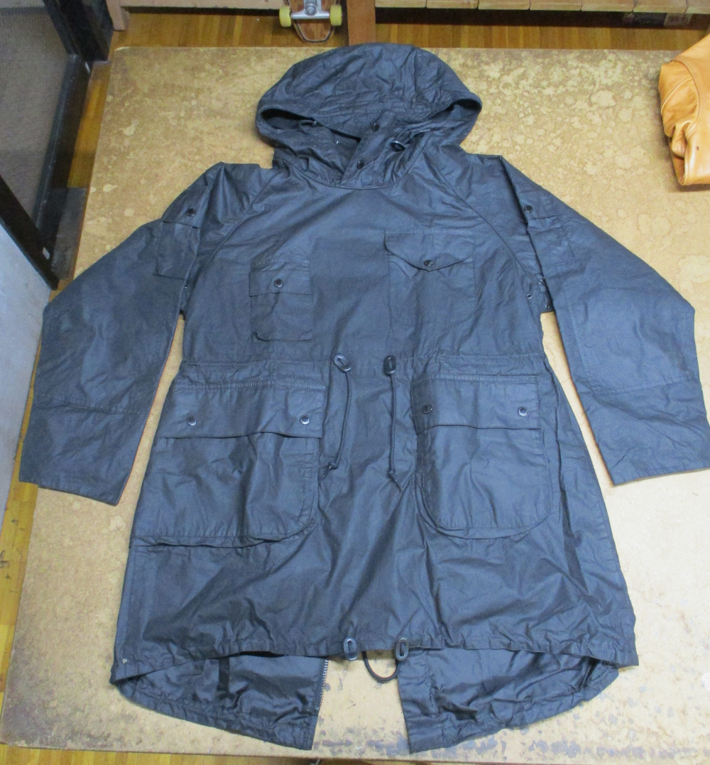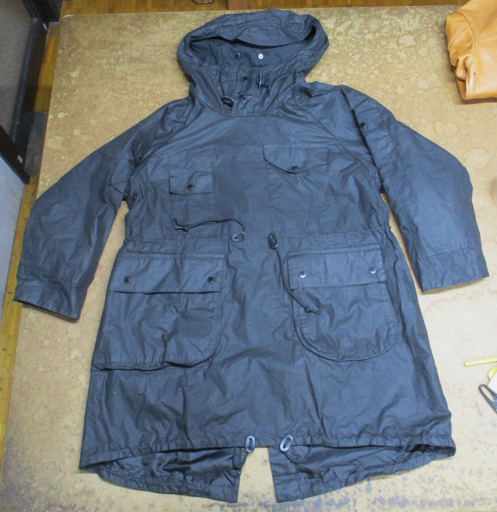 1枚目は神奈川県からの郵送のお客さんの長い袖丈を短くしていく前のバブアーのオイルドジャケットです。