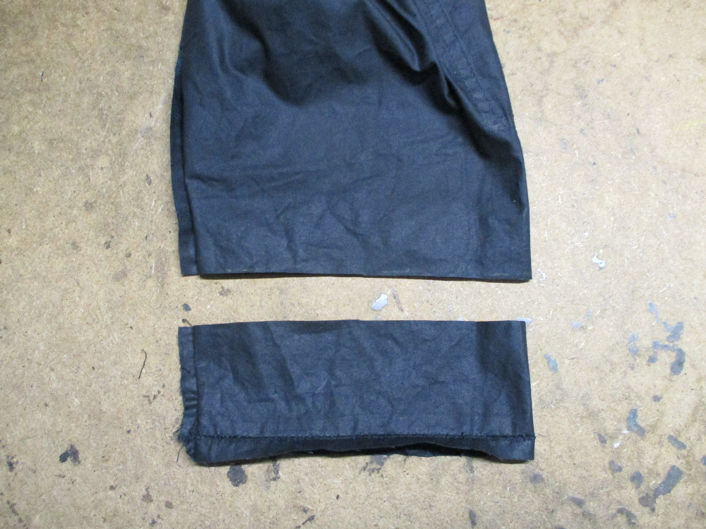 バブアーのジャケットはラグランのデザインのタイプのものが多いので肩口からは短くすることは出来ないので袖先から短くしていきます。