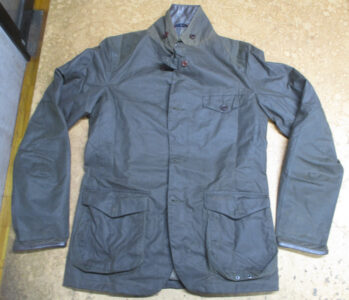 17枚目は18枚目との比較で袖丈を袖先から短くしていく前のオイルドジャケットです。