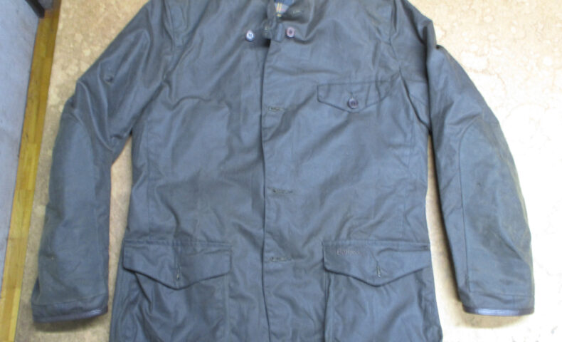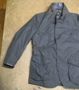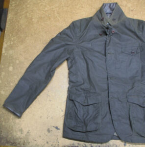 1枚目は神奈川県からの郵送のお客さんの長い袖丈を短く仕上げていくオイルドジャケットです。