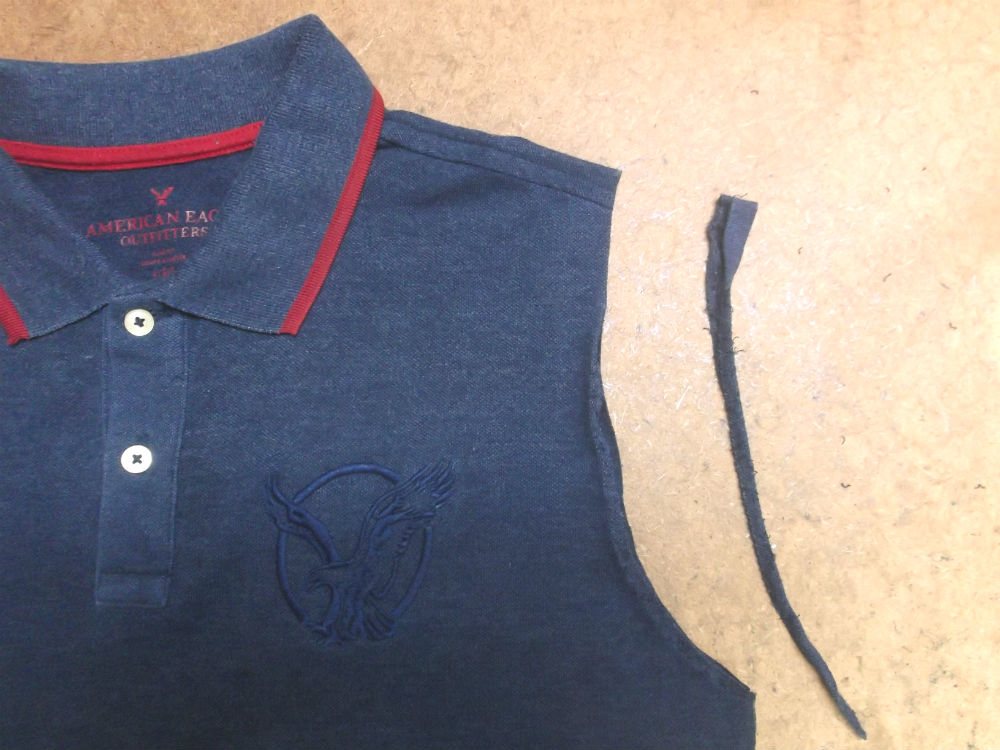 3枚目は左右の袖のパーツを外した後のポロシャツの胴体の写真です。