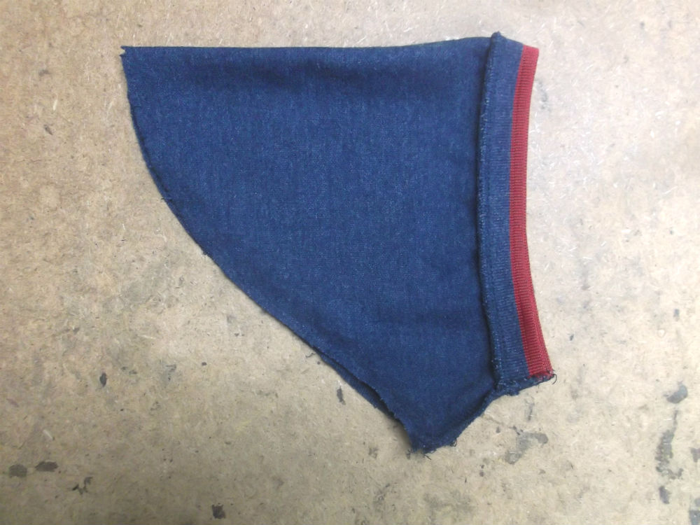 8枚目はポロシャツの着丈以外の肩幅、身幅、裾幅の生地をカットした後の胴体の写真です。