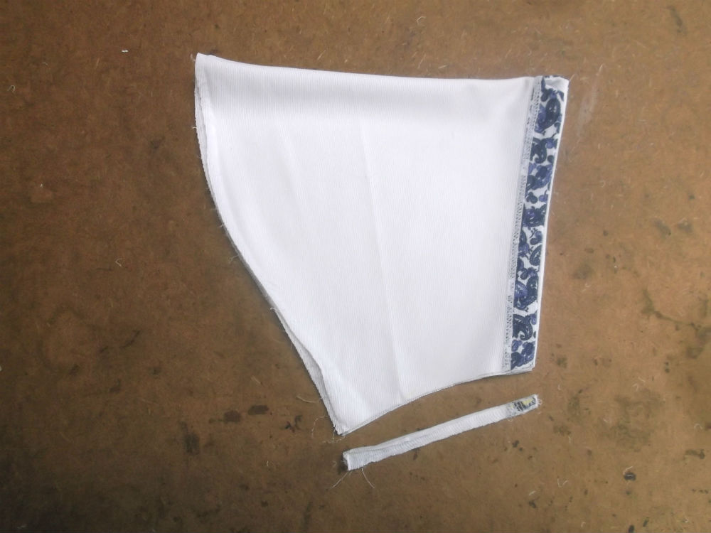 7枚目は肩幅の生地を見本の幅に合わせてカットした後の写真です。