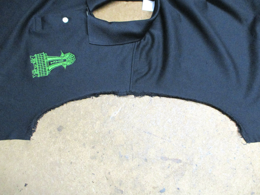 5枚目はポロシャツの胴体の脇から裾のサイドの生地をカットした後の写真です。