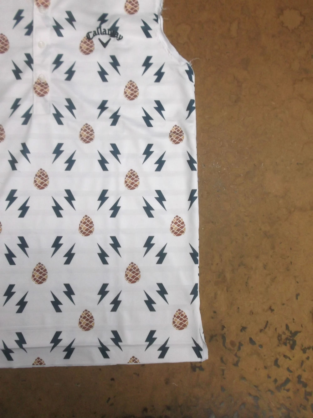 9枚目はポロシャツの胴体の着丈以外の肩幅、身幅、裾幅の生地をカットした写真です。