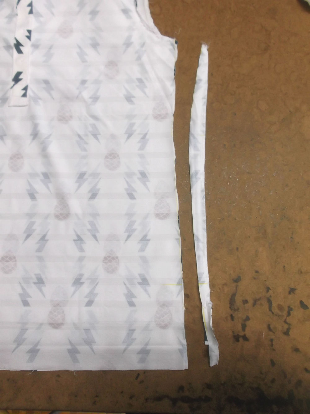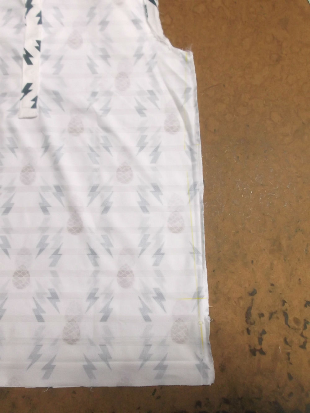 6枚目は脇から裾のサイドの生地をカットした写真です。