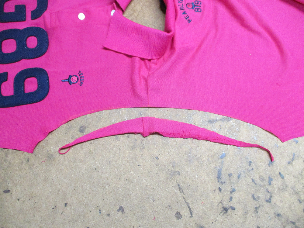 お客さんの気に入ってるブランドの大きいサイズのポロシャツをお客さんの気に入ったサイズのポロシャツを見本でお借りして小さくリサイズしていきます。