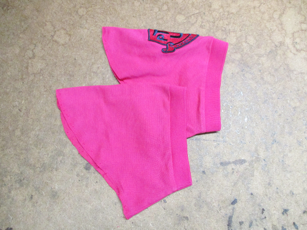 この肩幅、身幅、裾幅、袖幅、袖丈、着丈を測って大きいサイズのポロシャツを小さくしていきます。