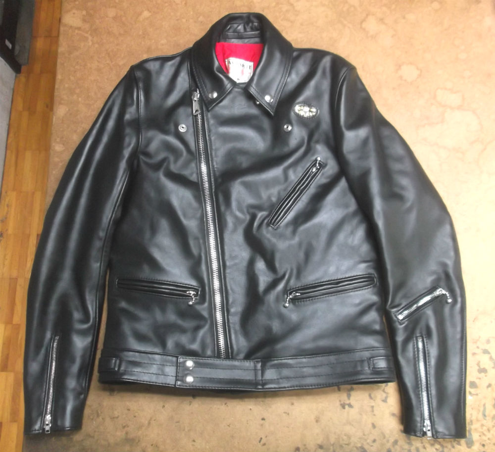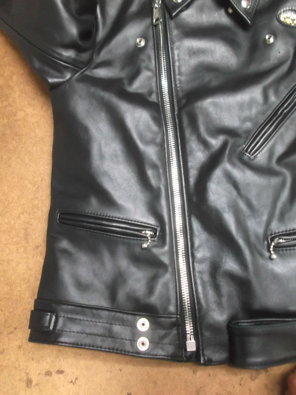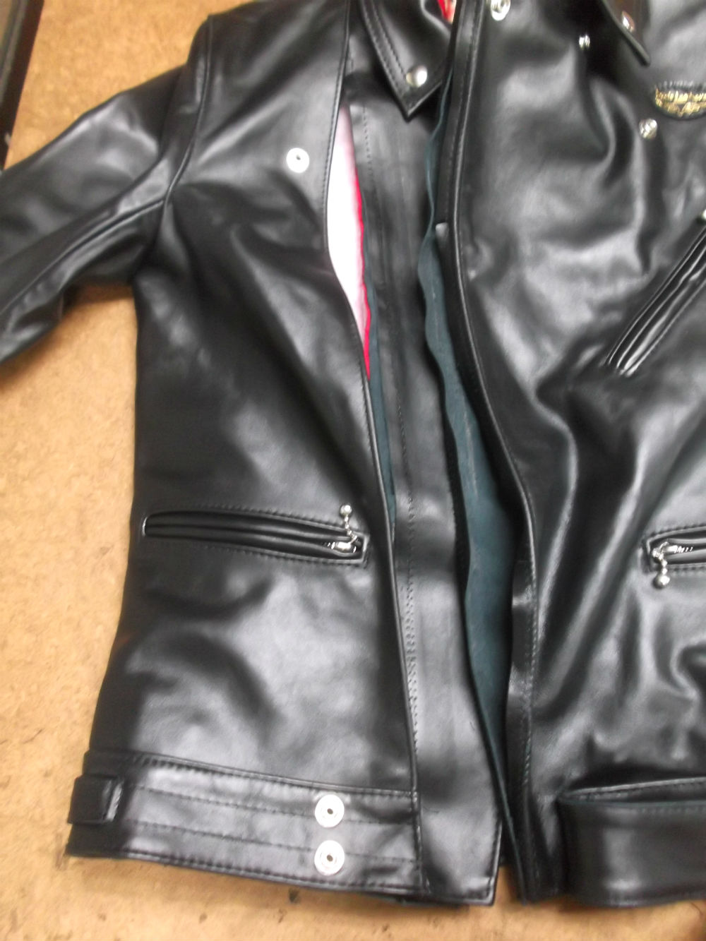 1枚目は熊本県からの郵送のお客さんの長い着丈のルイスレザーズのライダースジャケットです。