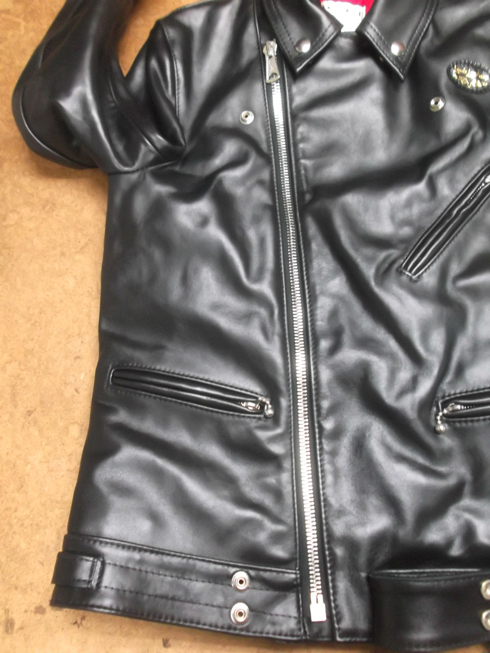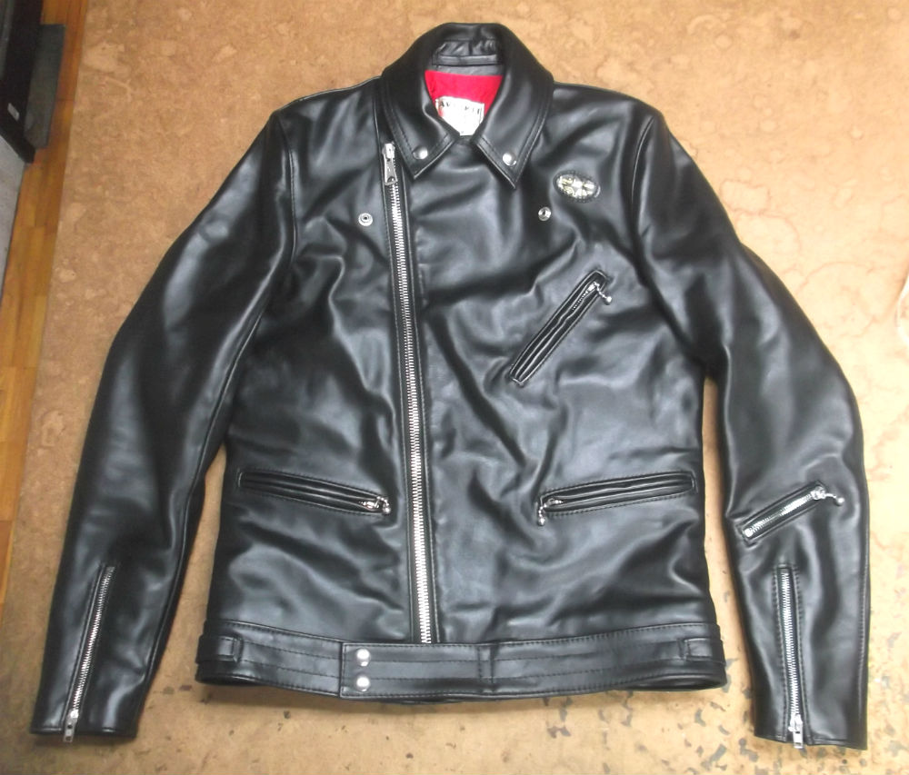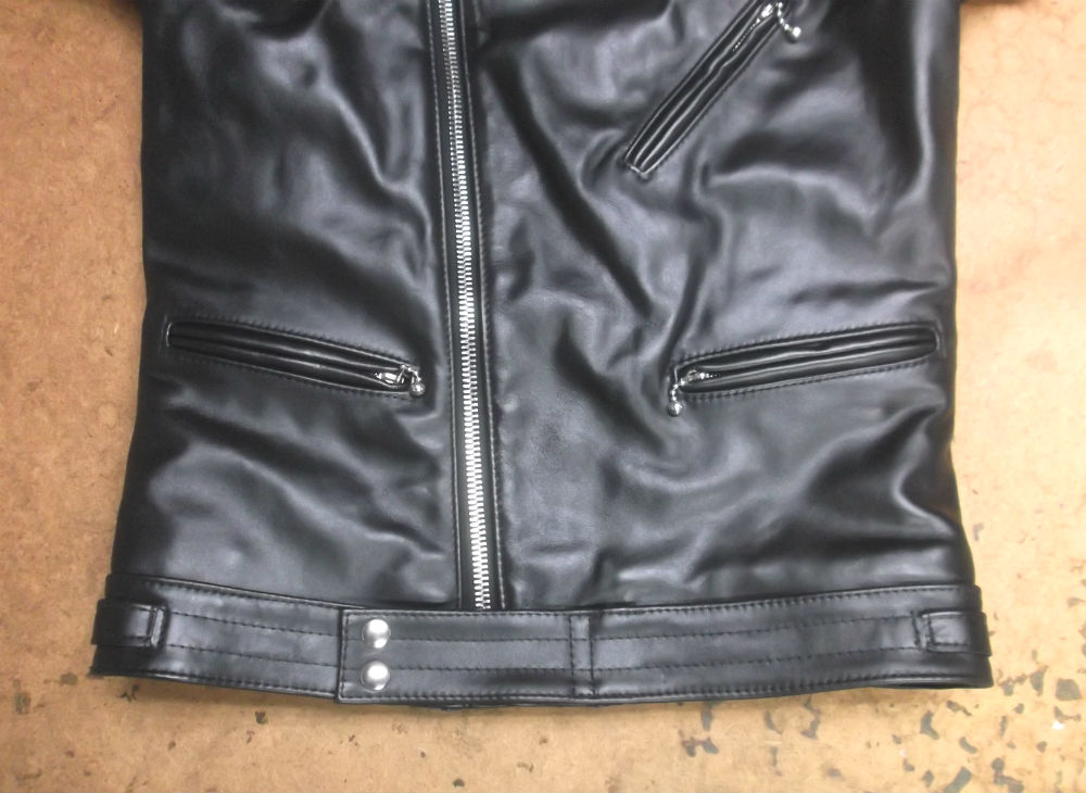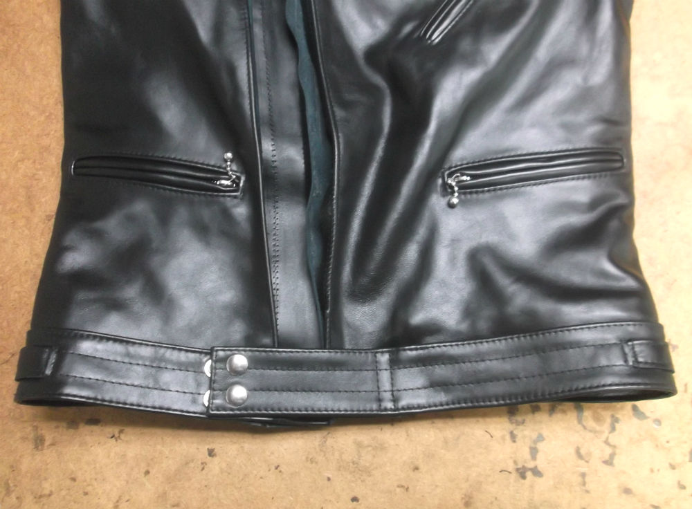 1枚目は熊本県からの郵送のお客さんの長い着丈のルイスレザーズのライダースジャケットです。