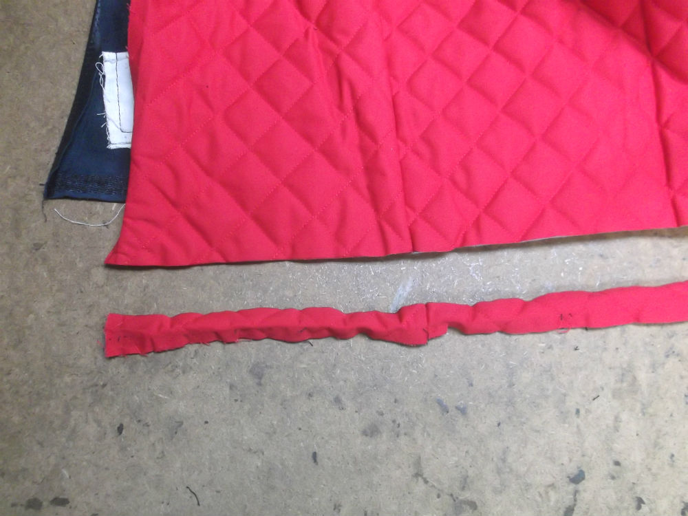 14枚目は裏地の裾の生地も表と同じようにカットした後の写真です。