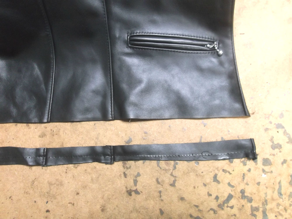 12枚目は帯上のレザーをカットして着丈を短くしていきます。