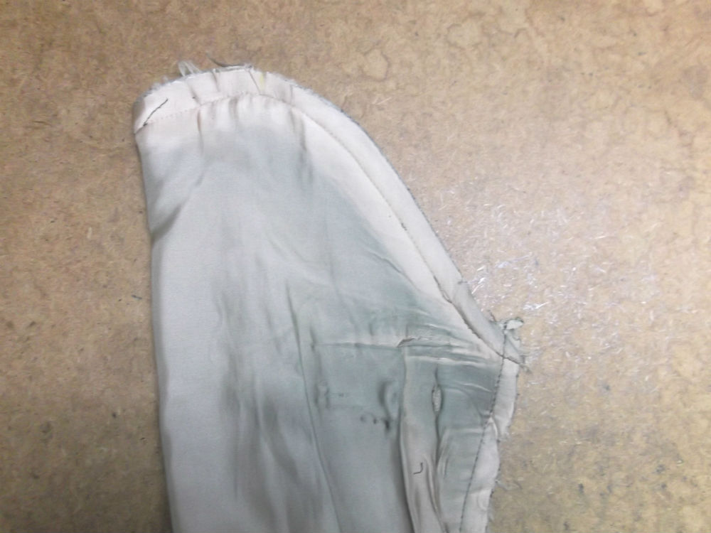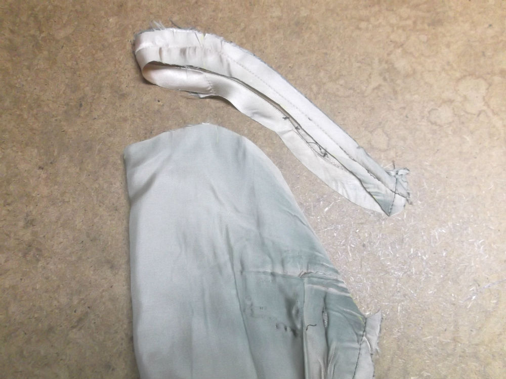 7枚目は裏地の生地の袖丈を袖山からカットした後の写真です。