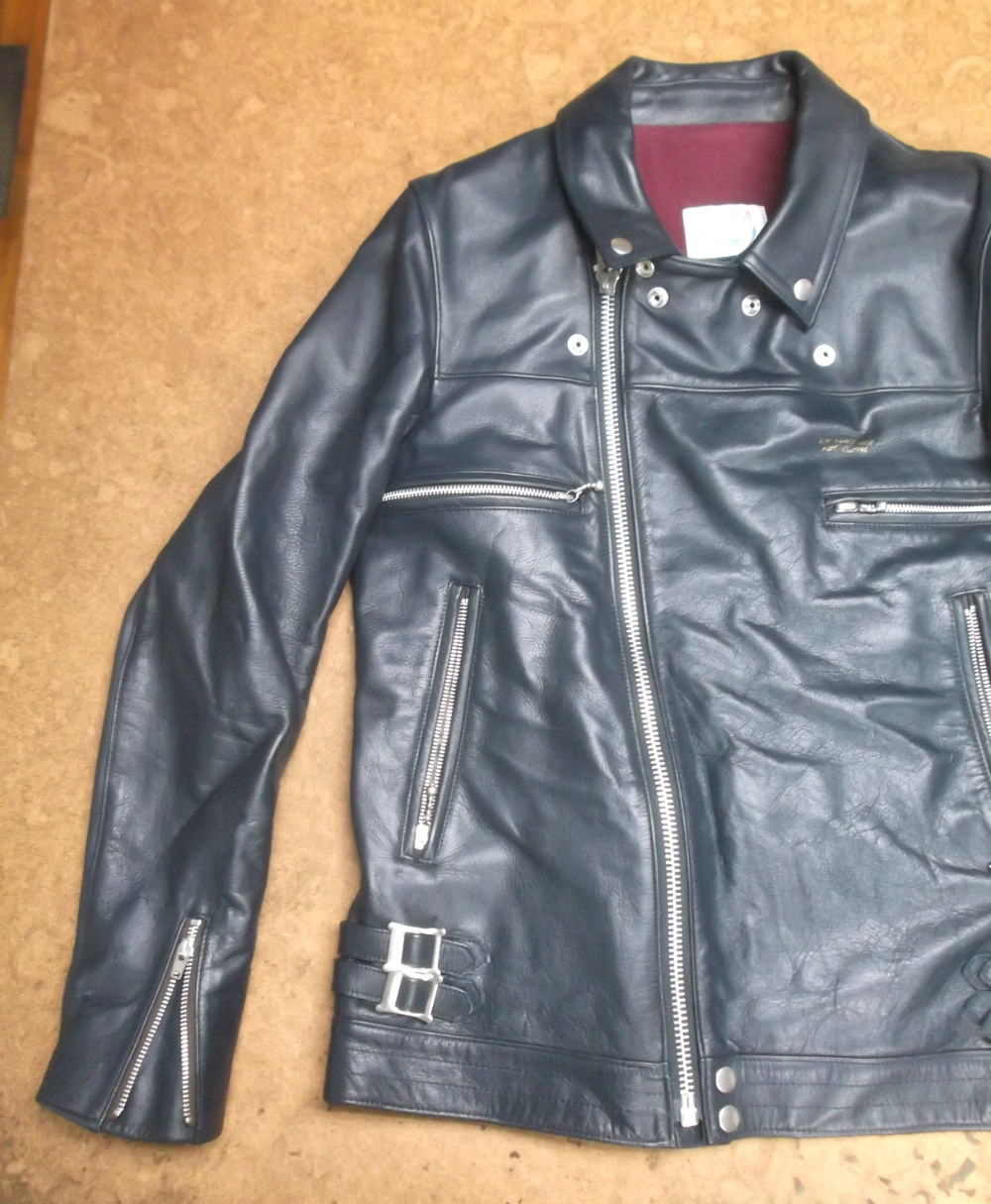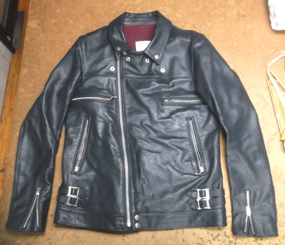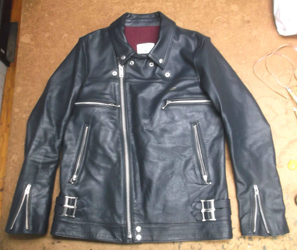 9枚目は10枚目との比較で長い袖丈を短くしていく前のライダースジャケットの写真です。