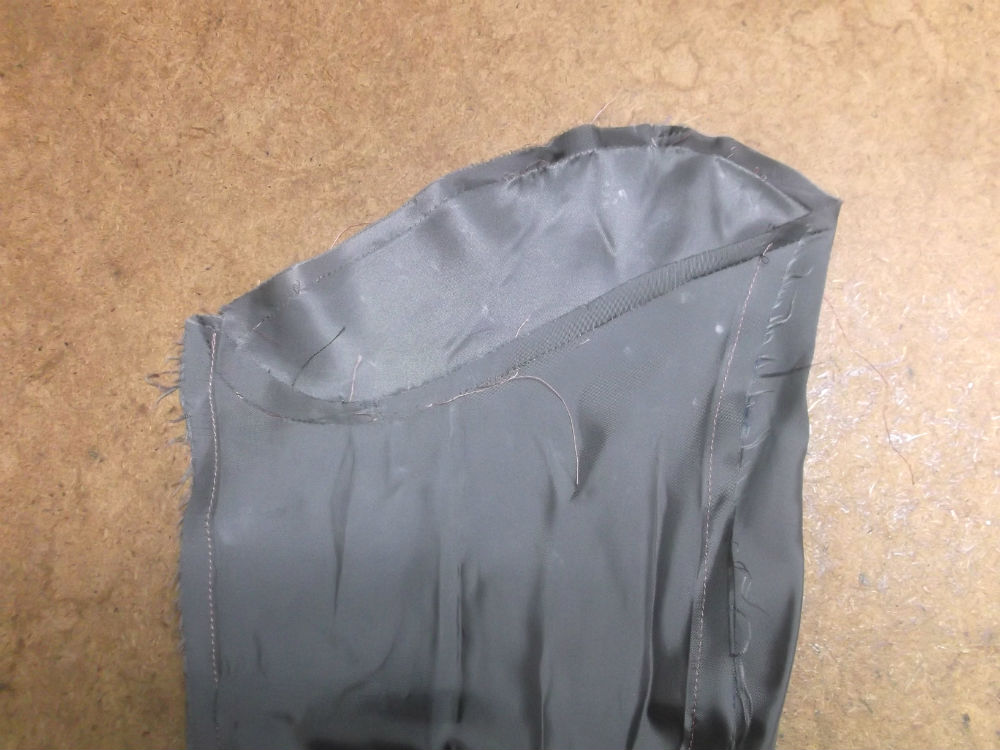 7枚目は裏地の袖山の生地をカットした後の写真です。