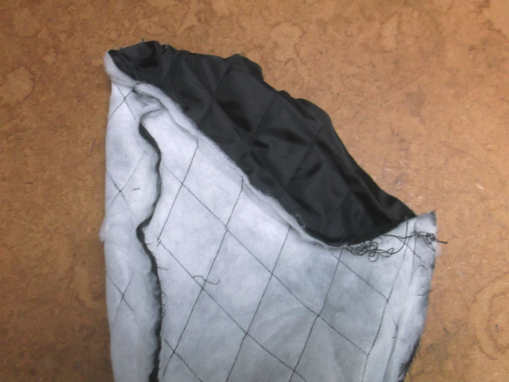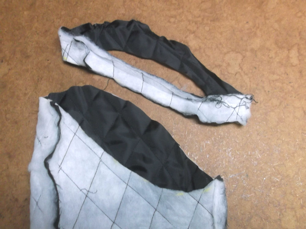 7枚目は裏地の袖山の生地をカットした後の写真です。