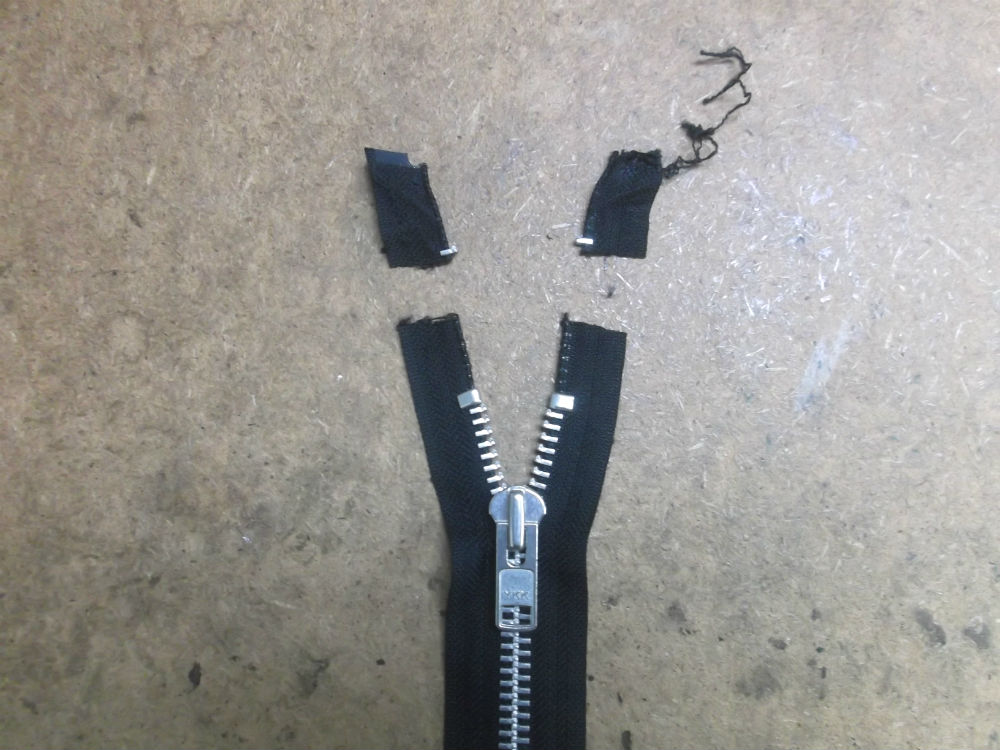 2. 壊れたライダースジャケットのジッパーを交換時にダブルジッパーに取り換え 革ジャン…