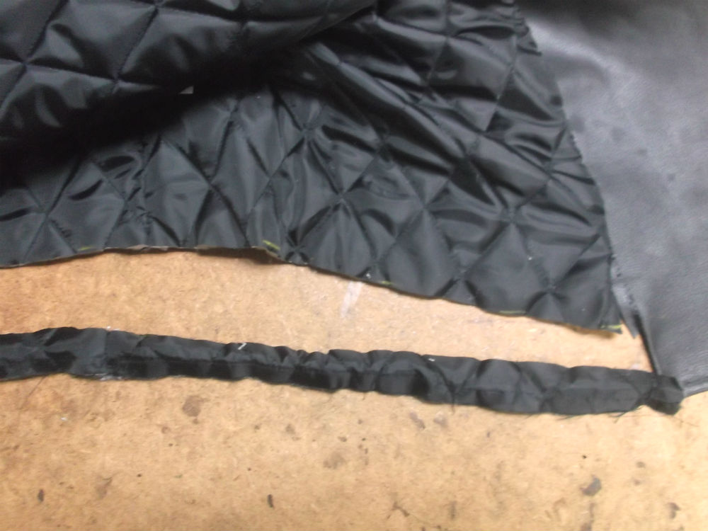 スタジャンの襟のリブニットと裏地を新しきものに交換していきます。…