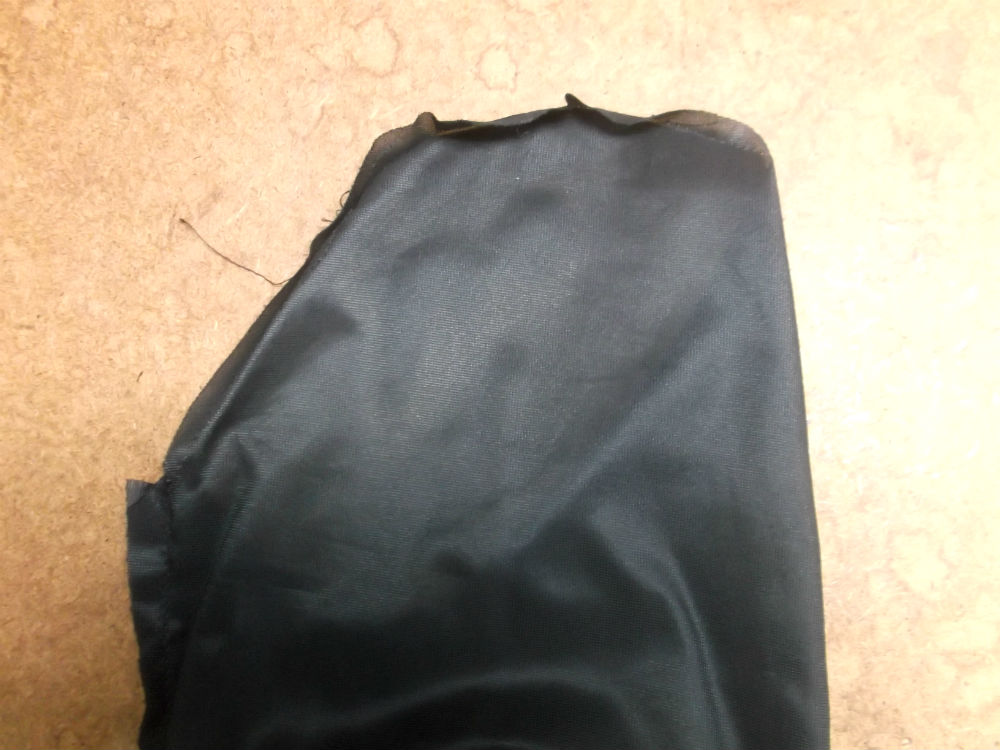 14枚目は裏地の裾幅の生地をカットした後の写真です。