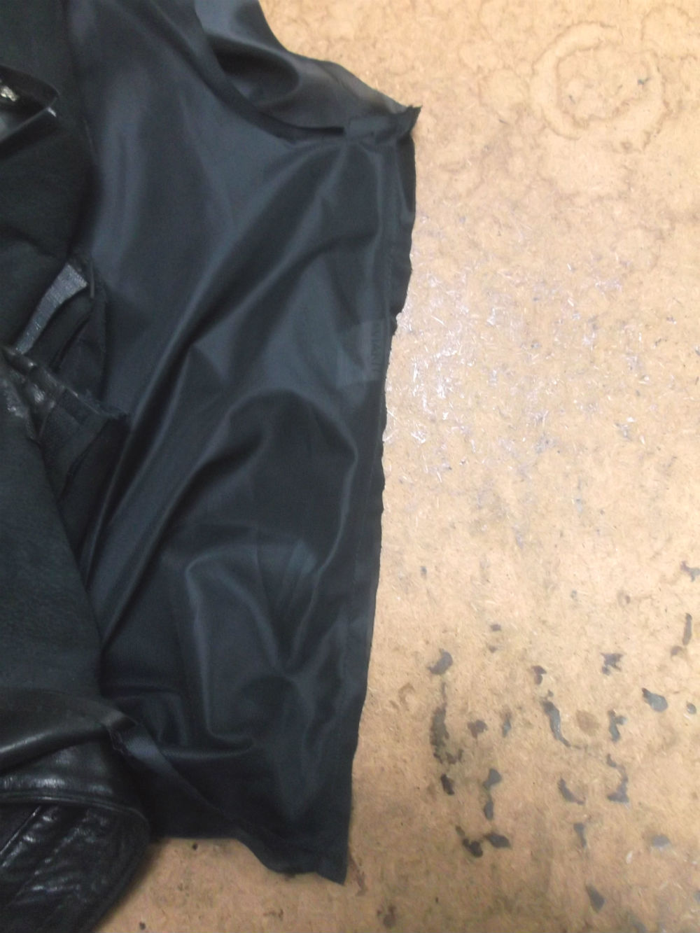 1枚目は福岡県からの郵送のお客さんの長い袖丈と裾幅を変更していく前のライダースジャケットです。