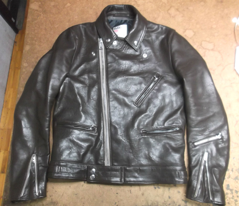 1枚目は長い袖丈を短くしていく前のルイスレザーのサイクロンです。
